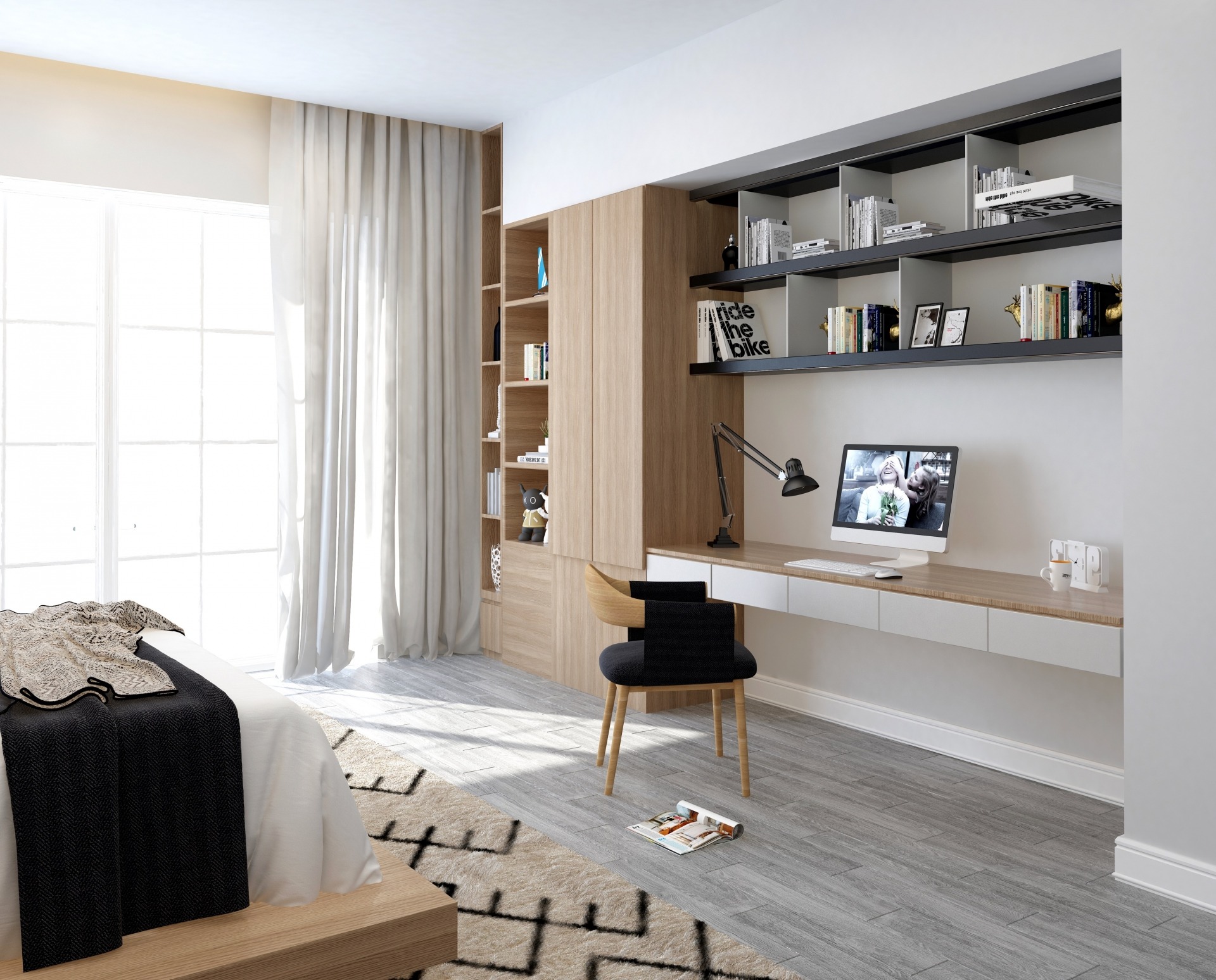 - ロフトベッド: ベッドの下にデスクを置く、究極の省スペース術です。ベッドと書斎の空間を立体的に分けられるので、空間にメリハリも生まれます。