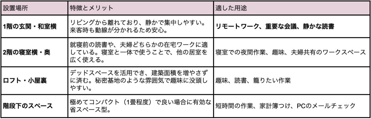 これらの情報を参考に、ご自身のライフスタイルと予算に合った書斎の形式を検討してみてください。