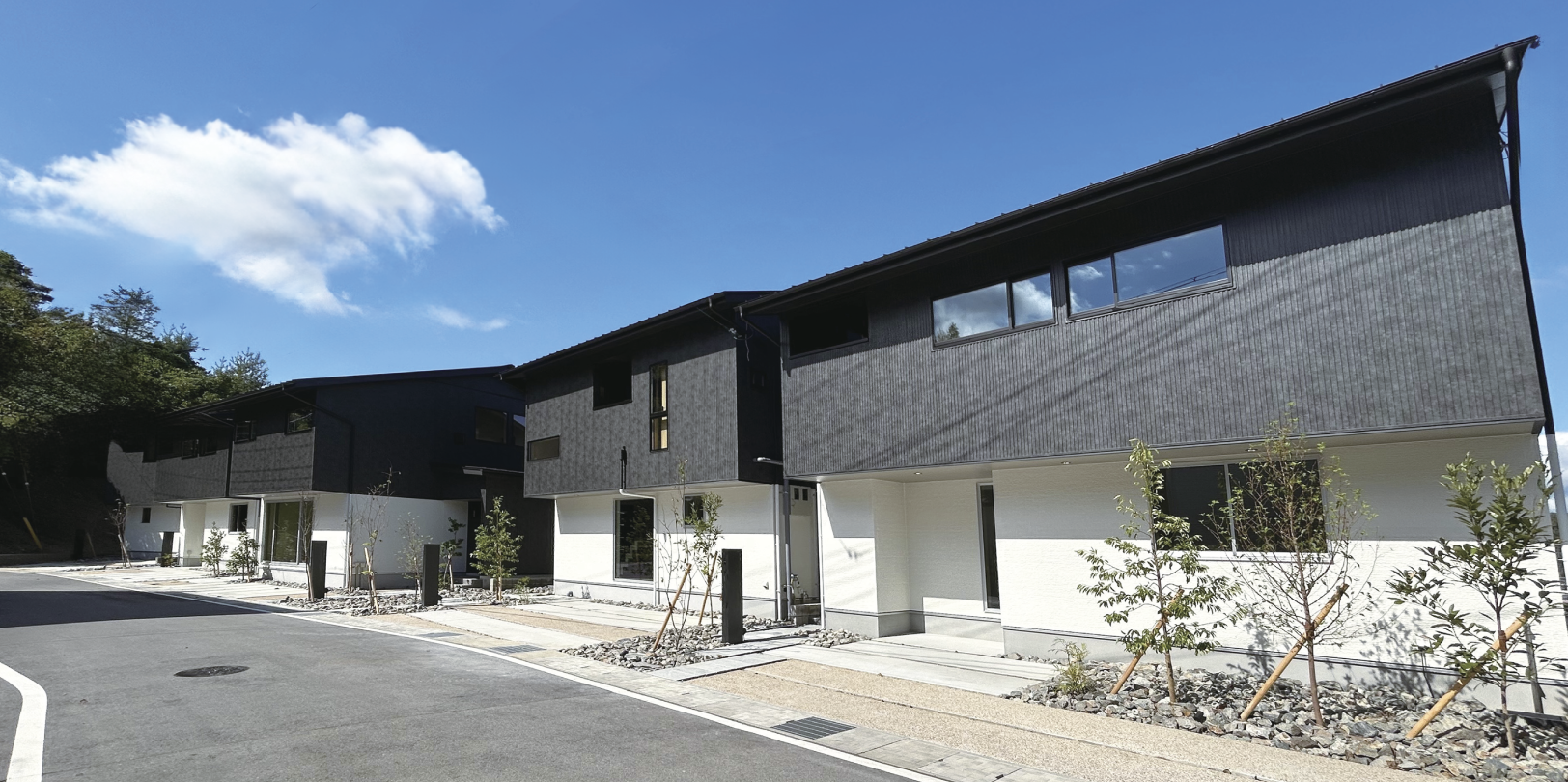 神戸市北区のニュータウン内に位置する6棟の分譲住宅である。建設前は荒廃していた斜面地を事業者が整地し住宅建設段階から苗木を植樹し、居住後は住民自身が斜面地の緑地を整備していく。住居内は6区画全て異なった平面計画とし、テラスを設け自然と触れ合え、住居内から北側に広がる里山的風景が楽しめるようにした。